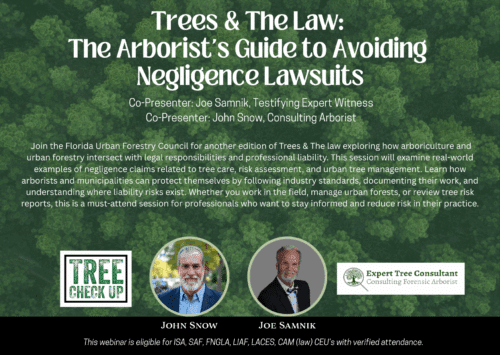 We will review the key terms, discuss terms to help us better understand what is and is not a compliant Tree Risk Assessment in field work and fora report, municipal codes written to be compliant (legal concurrency) with FS163.045, example reports to highlight professional practice that meets ethics, and that do not, and have time for Q&A about these topics.